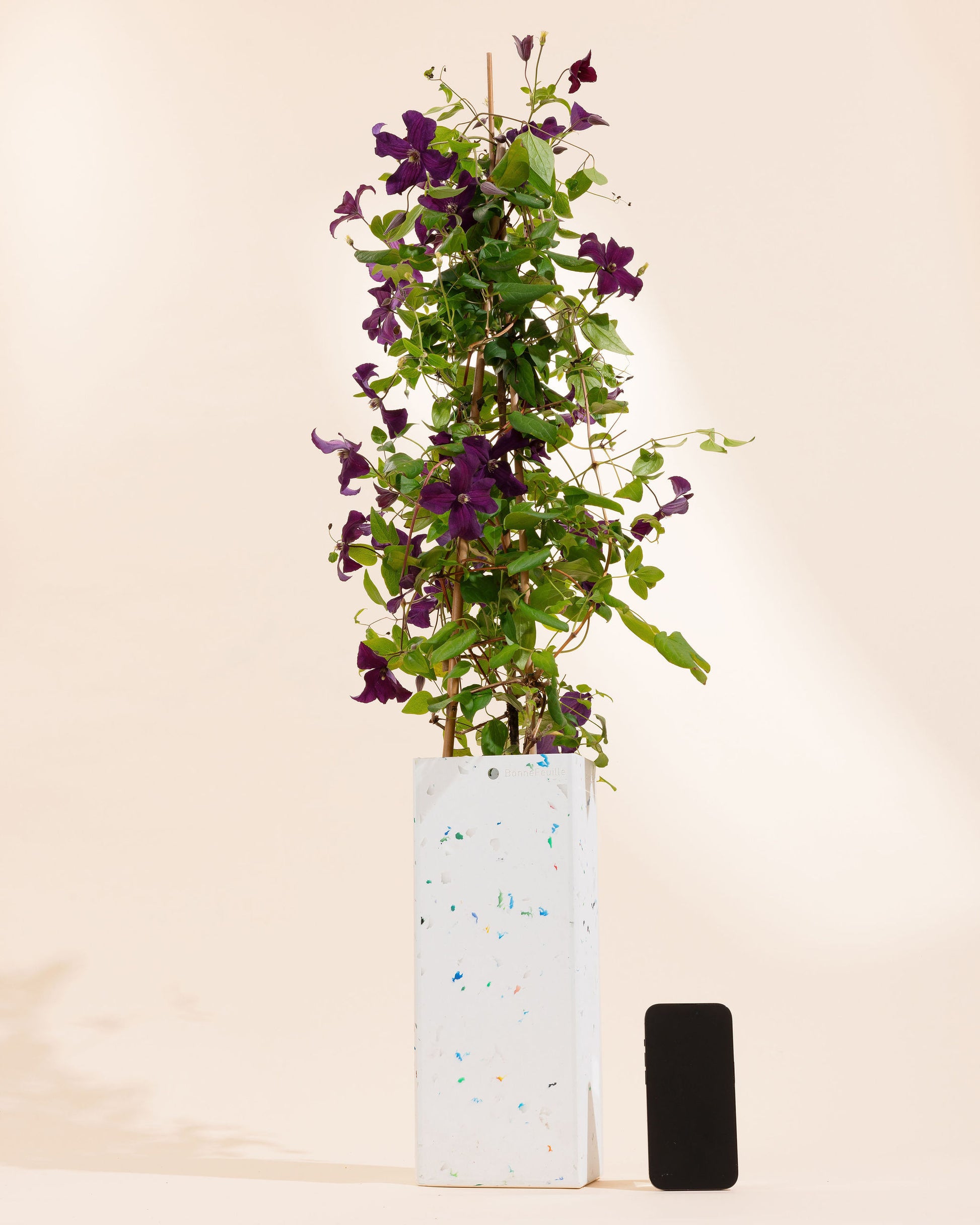 L’innovation BonneFeuille. Nos BonneFeuilles peuvent être livrées dans leurs pots recyclés BonneFeuille adaptés aux fenêtres des villes (H35cm x 10cm x 14 cm), ou dans les pots de notre partenaire Elho, ou si vous le souhaitez sans pot ! Toutes nos plantes d'extérieur vous enverront un message sur WhatsApp lorsqu'elles auront besoin que vous vous occupiez d’elles. Tant que votre abonnement est en cours, votre plante est garantie. Notre abonnement est résiliable à tout moment.